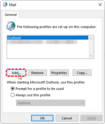Step 4. Click "Add" to create a new profile.Set up the new profileand follow the prompts to add your email account(s).