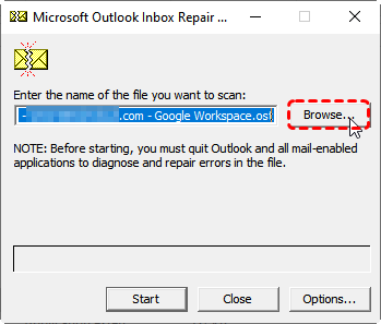 Step 3. Click "Browse…" and navigate to your PST or OST file.