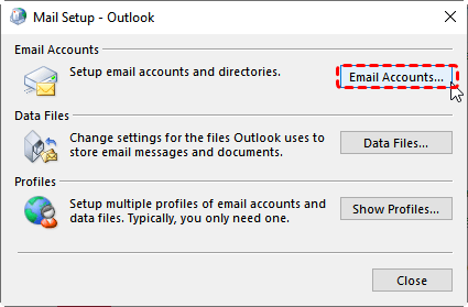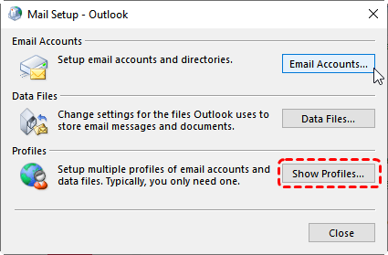 Step 3. In the Mail Setup window, click "Show Profiles".