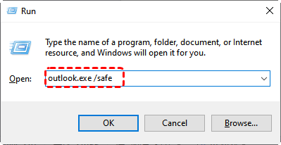 Step 2. Press Windows + R on your keyboard.Type "outlook.exe /safe" and click "OK".