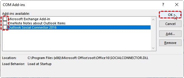 Step 3. Uncheck all add-ins and click "OK".