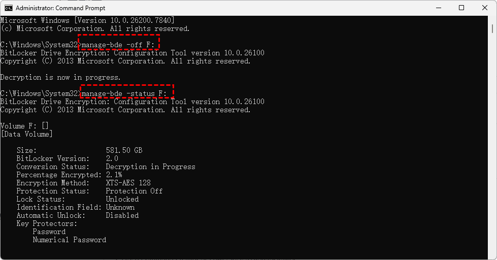 Way 3. How to Deactivate BitLocker Using Command Prompt