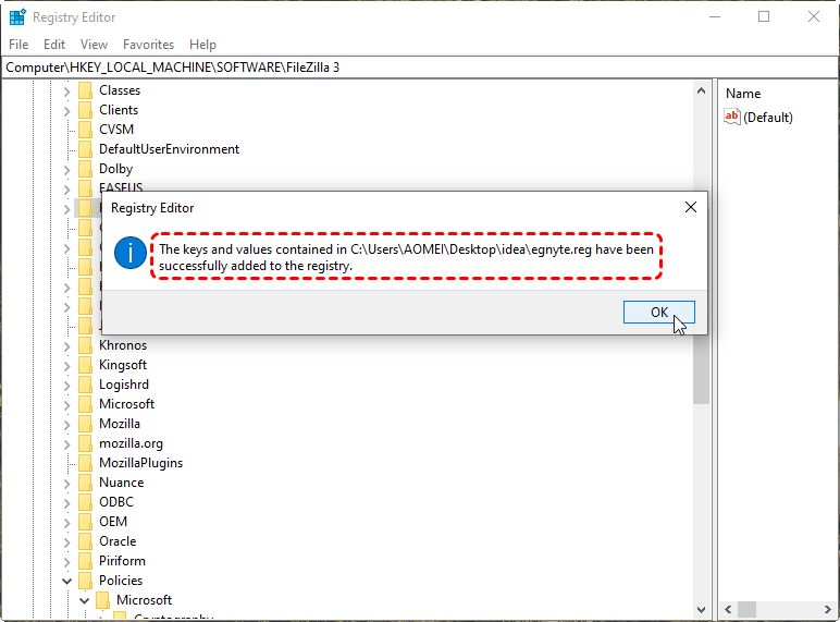 2. Merge the Backup: Double-click the “.reg” file > Click "Yes" to confirm. Alternatively, you can open “Registry Editor (regedit)" > "File" > “Import” > Select the".reg" file.