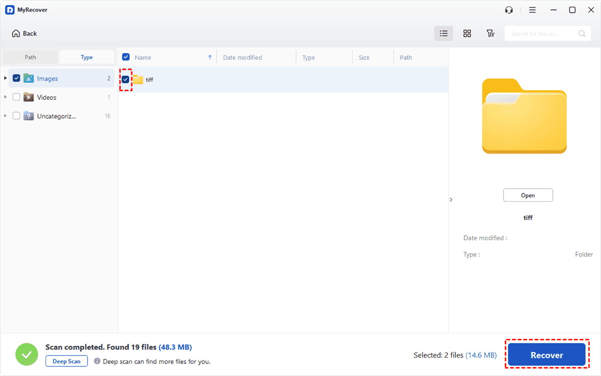 To easily recover your TIFF files, it’s highly recommended to try a professional data recovery software like MyRecover.