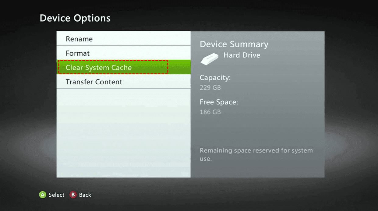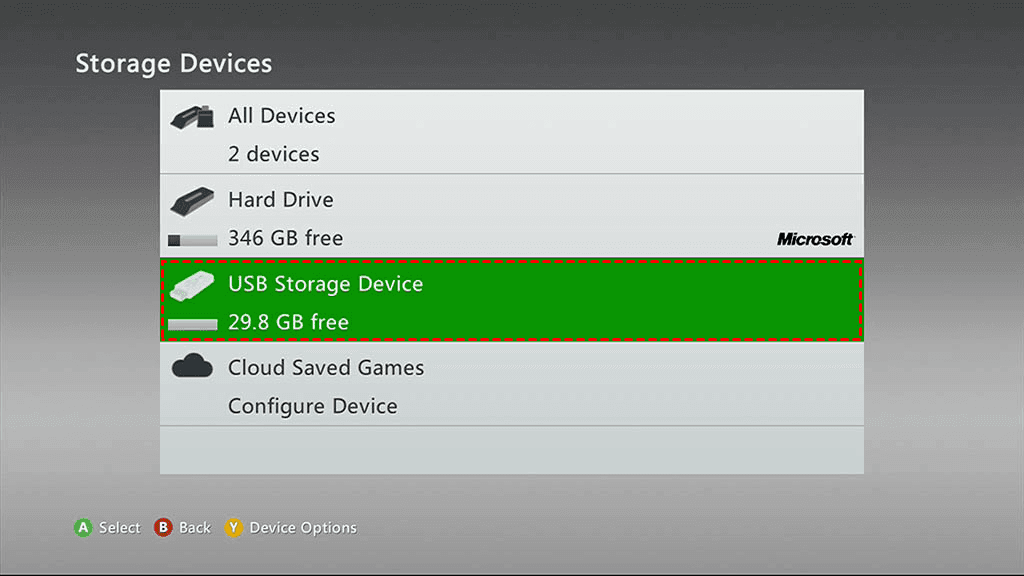 2. Highlight your Hard Drive and press the Y button on your controller for "Device Options".