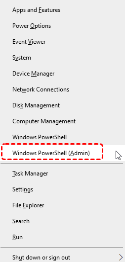Step 1. Press the Windows key + X and select "Windows PowerShell (Admin)".