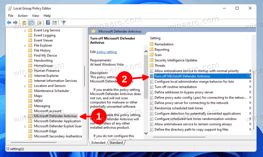 Method 4: Disable Windows Defender Using Group Policy (Windows Pro/Enterprise)