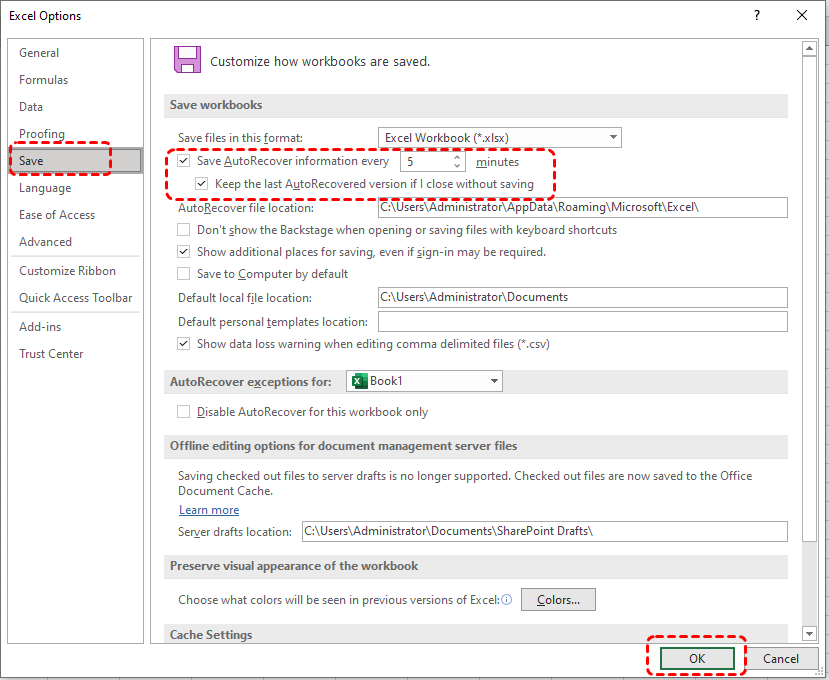 Even if the AutoSave feature isn’t available, Excel’s AutoRecover feature provides essential protection by periodically saving copies of your workbook. Enabling AutoRecover ensures that if Excel crashes, closes unexpectedly, or you accidentally exit without saving, you can recover most of your recent work.
