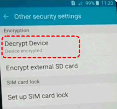 Step 1. Open "Settings" > "Lock screen and security" > "Other security settings" > "Decrypt Device".