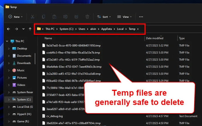 2. Navigate to C:\Users\YourUsername\AppData\Local\Temp.