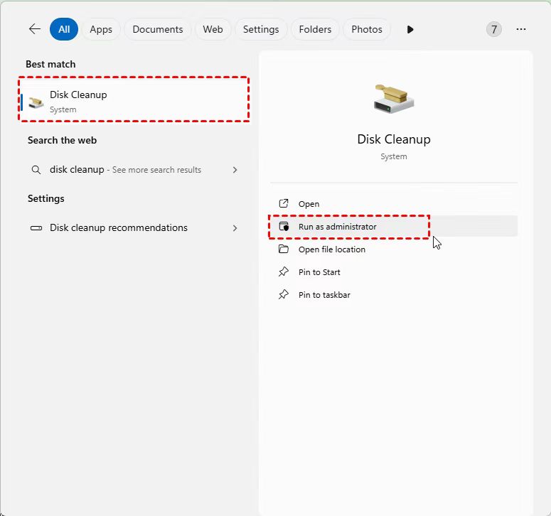 1. Search for "Disk Cleanup" in the Start Menu and run it as an administrator.