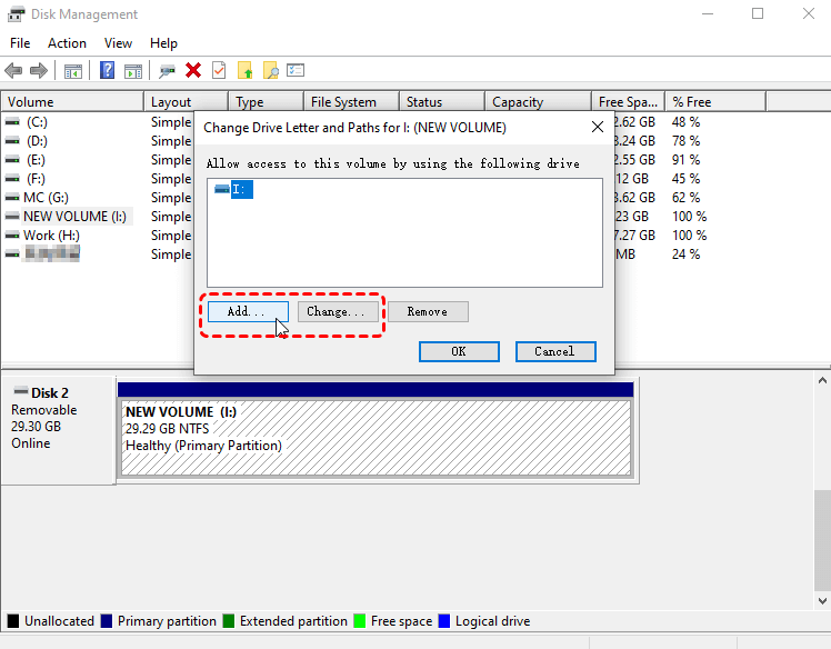 Step 4. If the drive has no letter, click Add and assign a letter. If it has a letter but it’s different, click "Change" and assign the original letter. Click "OK" to confirm.