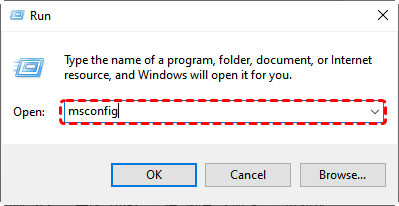 Step 1. Press "Windows + R", type "msconfig", and press Enter.