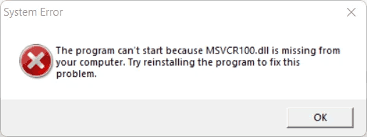 When you see the error in Windows 11: System Error. The program can’t start because MSVCR100.dll is missing from your computer. Try reinstalling the program to fix this problem. You might be lost. What’s the MSVCR100.dll file? Why is it missing? It will stop you from opening your programs.