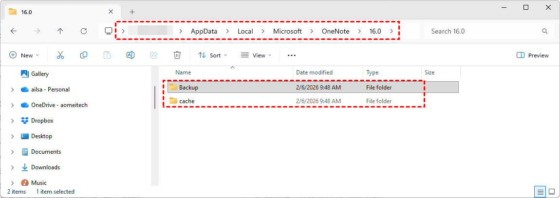 3. Open the backup folder path to find your lost OneNote files.