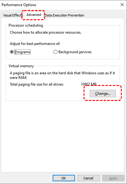 Step 4. In the Virtual Memory section, click "Change".