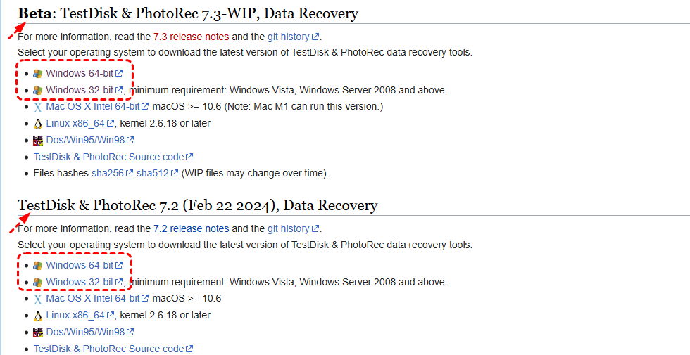 Go to PhotoRec’s official page. PhotoRec is bundled with TestDisk, so downloading TestDisk will include PhotoRec. Choose the version that matches your operating system: Windows, macOS, or Linux. For Windows, click the Windows linkunder the Latest Version section.