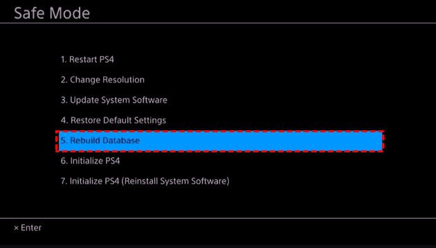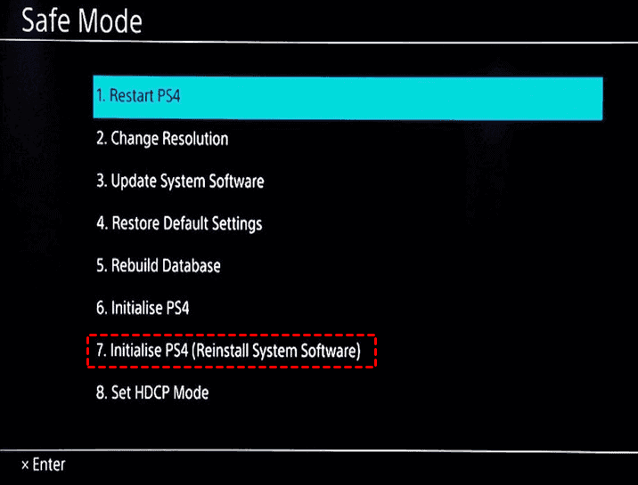 4. From the Safe Mode menu, select option 7: Initialize PS4 (Reinstall System Software).