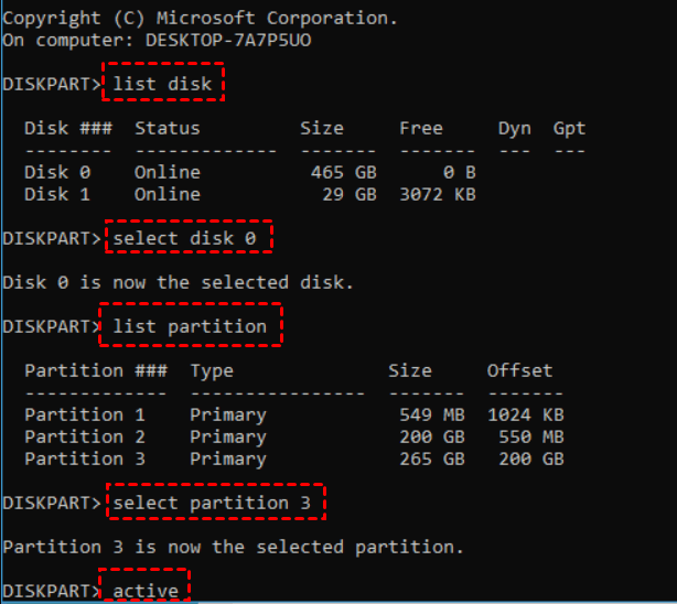 Step 2. Enter the following command one by one: