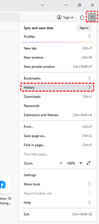 Way 1. Check the Firefox History Library and Recently Closed Windows