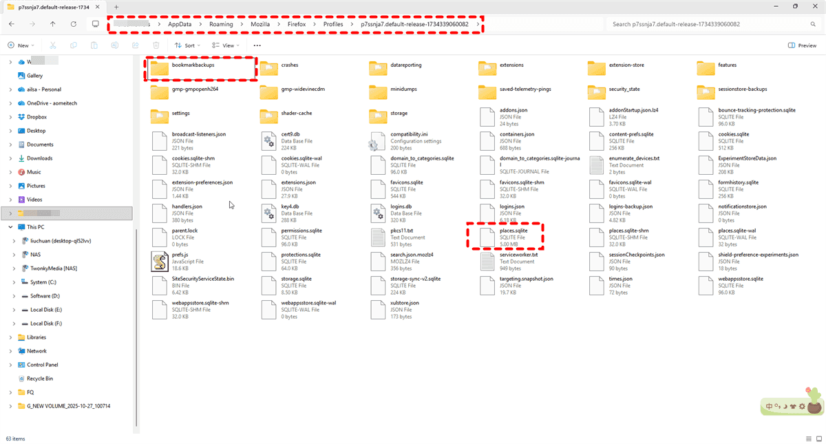 2. Inside your profile folder (it will have a random-looking name), look for files like places.sqlite (your current history), places.sqlite.corrupt (a failed backup), and, crucially, places.sqlite.bak or bookmarkbackups/ folder. If you're lucky, you can replace the current places.sqlite with a recent .bak file.