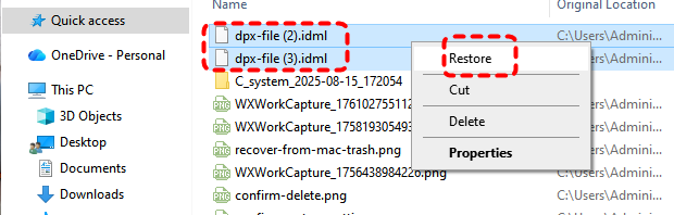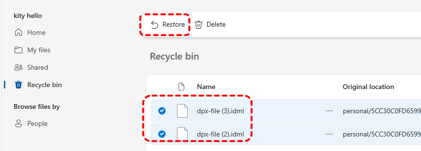 If you use Adobe Creative Cloud, OneDrive, or Google Drive to store or sync design projects, your deleted IDML files may still be available in the cloud’s trash or version history. But importantly, they usually only keep deleted files for about 30 days. So, act quickly before the files are permanently deleted. Take OneDrive as an example here: