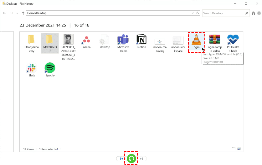 If you have configured File History in advance for these video files, you can restore OGM files easily with File History. So check how to recover deleted OGM files: