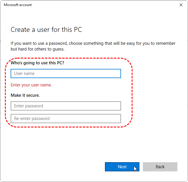 Step 3: Create a username and password for the new account. Click "Next" to complete creation.