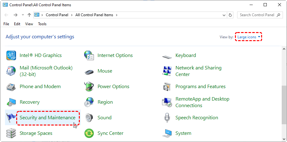 Step 1. Open Control Panel and navigate to "Security and Maintenance" (you might need to change "View by" mode if you don’t find this option).