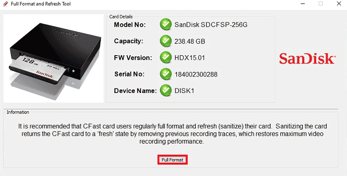 3. Open Full Format and Refresher, ensure all the check marks are green, and hit Full Format.