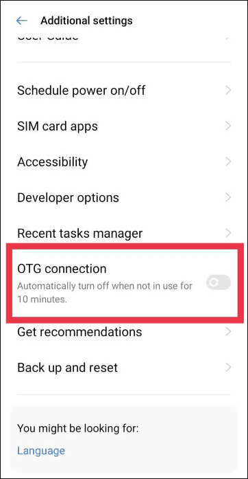 First, your Android phone must support USB On-The-Go (OTG). Most modern phones do. You often need to explicitly enable this feature. Dig into your Settings, look for Connections > USB or search for “OTG”, and switch it on.