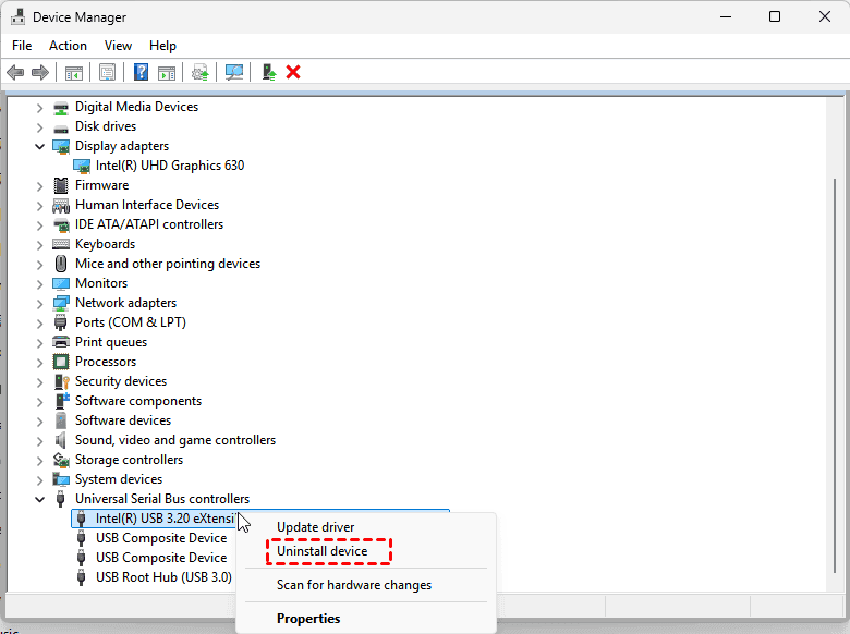 Windows will reinstall these fundamental drivers, which can resolve persistent detection problems stemming from a corrupted USB stack.