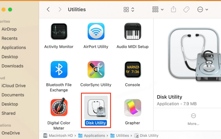 Step 1. Open "Disk Utility" from "Finder" > "Applications" > "Utilities".