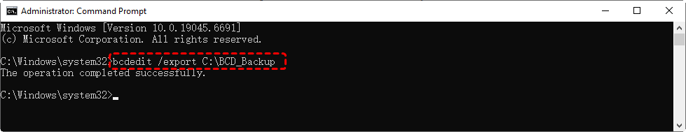 In Command Prompt, first back up the existing BCD: bcdedit /export C:\BCD_Backup