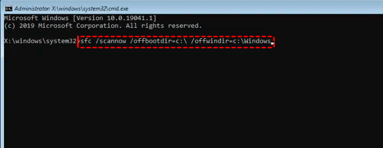 Step 5. Run the command to scan and repair system files: sfc /scannow /offbootdir=C:\ /offwindir=C:\Windows