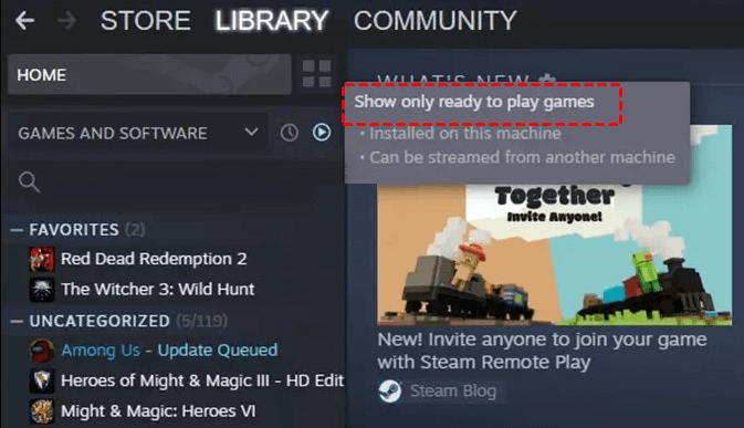 Step 2. Click the filter and make sure "Show only ready to play games" unchecked.