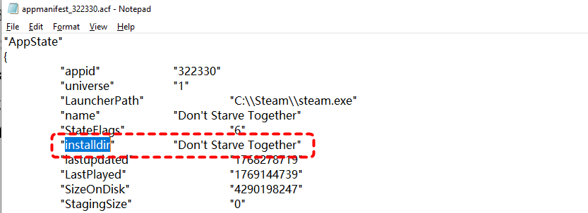 Step 4. Find "Installdir" and replace the text with the game folder.