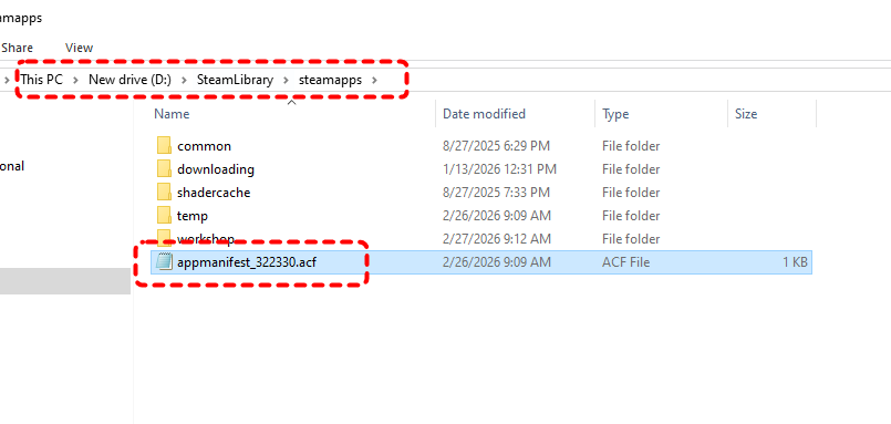 Step 2. Look for the relevant appmanifest_XXXX.acf file. The number represents game ID, which varies from game to game.