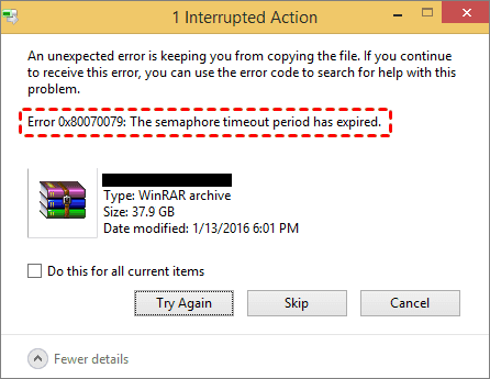 How do I fix error 0x80070079, the semaphore timeout period has expired?