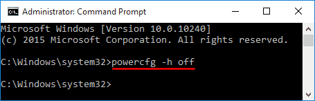 2. Type powercfg /h off and press Enter.