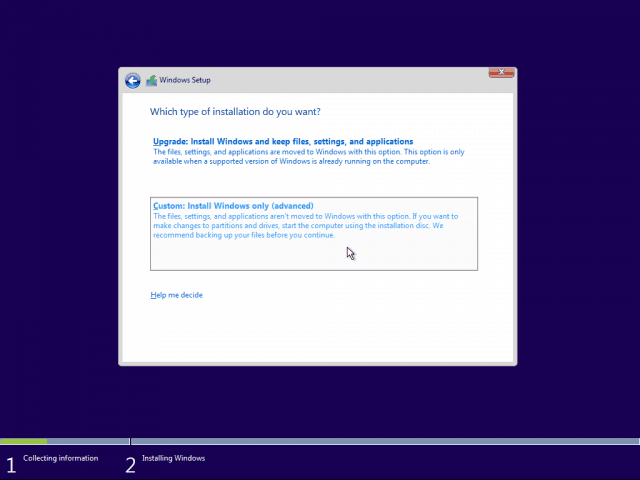 4. Choose Custom Install.