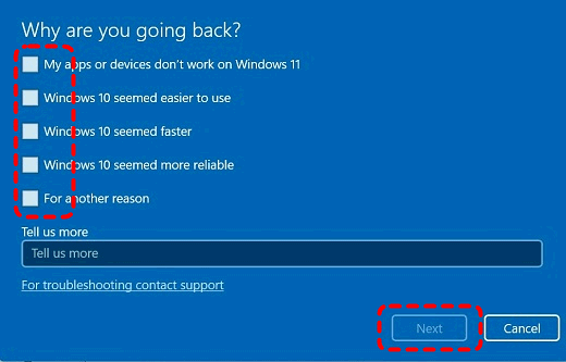 Step 3. Select an answer or type additional reasons, then click "Next".