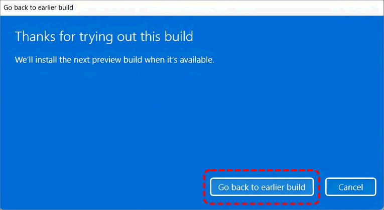 Step 5. Click "Go back to earlier build", your device will start the "Go Back" process.