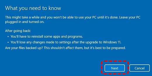Step 4. Click "No, thanks" to continue the process and you can also check the latest Windows updates. Learn the "What you need to know" and click "Next" to continue the process.