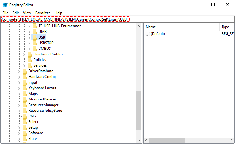 HKEY_LOCAL_MACHINE\SYSTEM\CurrentControlSet\Enum\USB