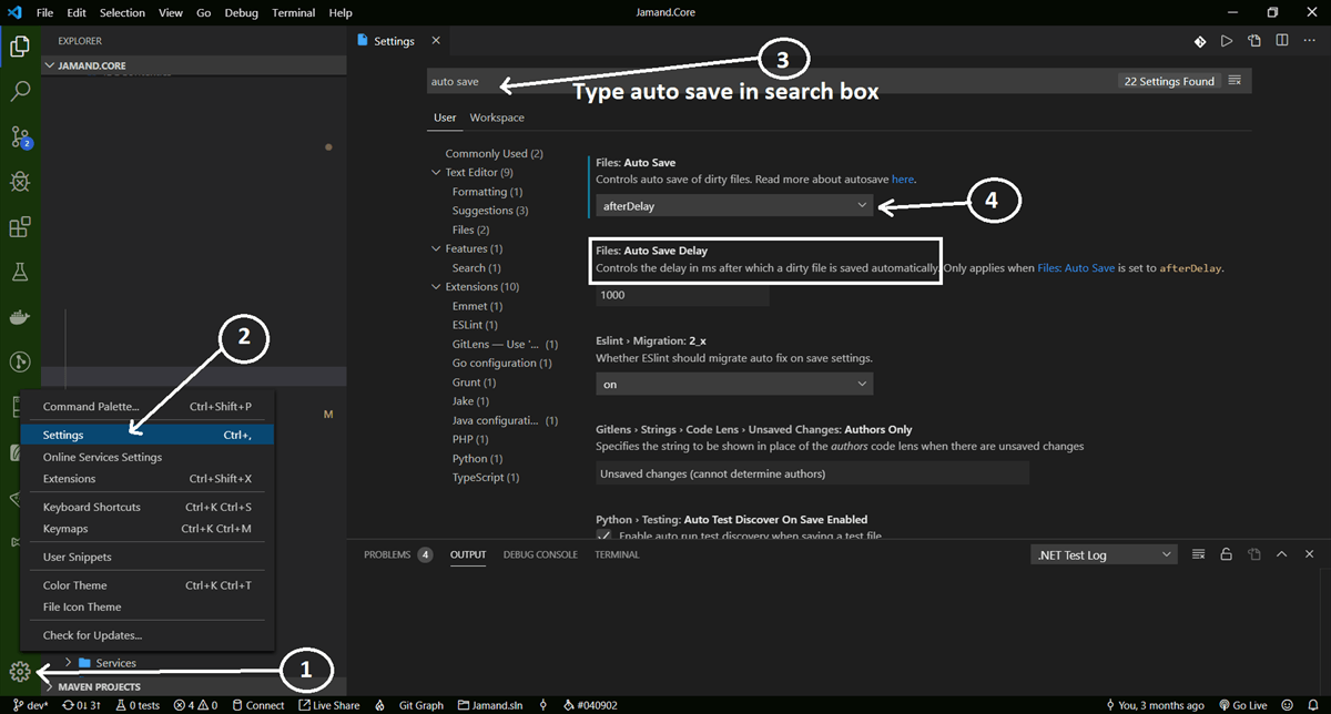 Auto Save ensures that code changes are stored continuously. To enable it: