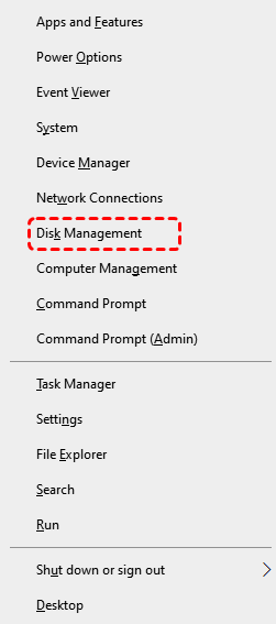 1. Press Win + X → select Disk Management.