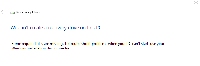 Fixed: We Can't Create a Recovery Drive on This PC