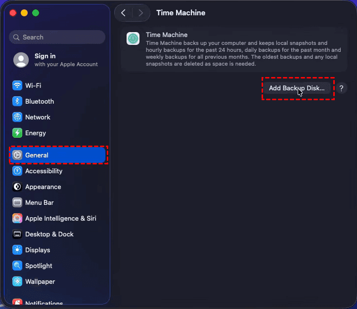 2. Go to System Settings > General > Time Machine.