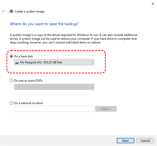 Step 4. Choose where to save the backup: On a hard drive (recommended); On one or moreDVDs; Or on a network location.